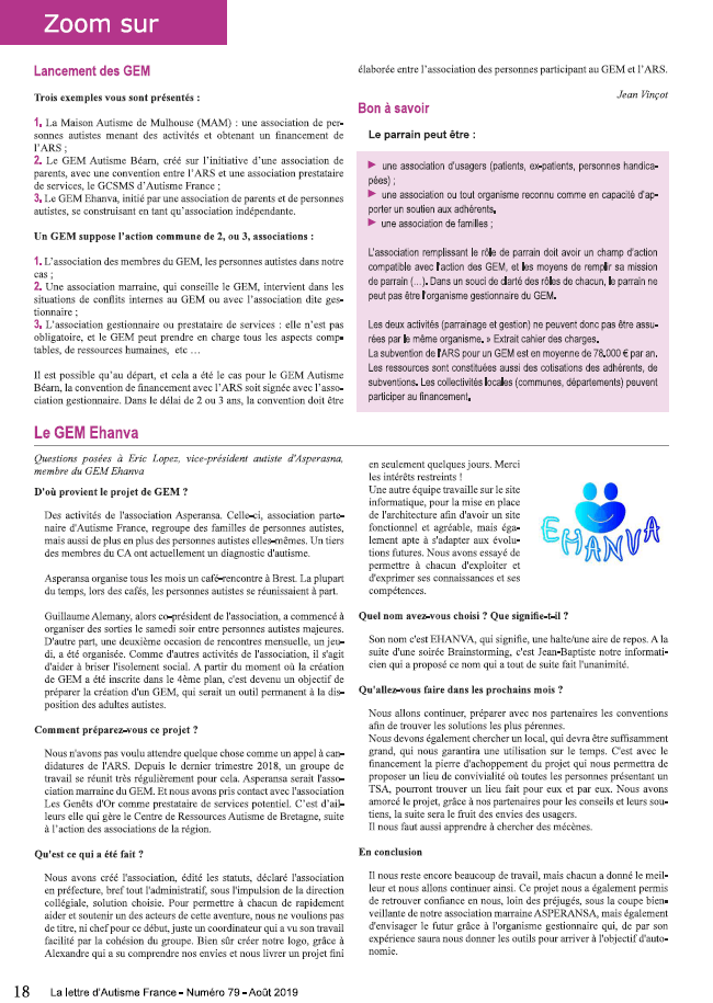 La lettre d'Autisme France - Août 2019
