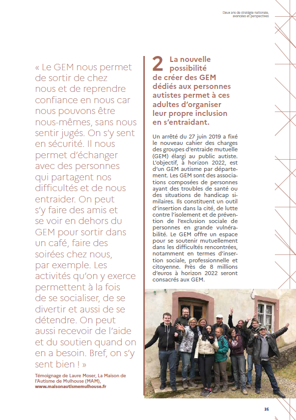 Il nous a promis sont soutien et nous lui en remercions. Dans les jours qui ont suivi, son assistant parlementaire nous a contacté pour poser une question à la ministre de la santé lors d’une séance de l’Assemblée Nationale. La question portera sur le cadre dans lequel notre structure pourra se mouler : dans le domaine de la prise en charge par les pairs, il n’existe pour l’instant que les GEM (Groupe d’Entraide Mutuelle), et notre structure, en répondant aux besoins des adultes avec autisme, remplira les mêmes fonctions qu’un GEM, mais pas que. Notre ambition est aussi de favoriser l’accès à l’autonomie et l’insertion professionnelle, ce que ne font pas les GEM. Sans parler de la promotion des talents artistiques…