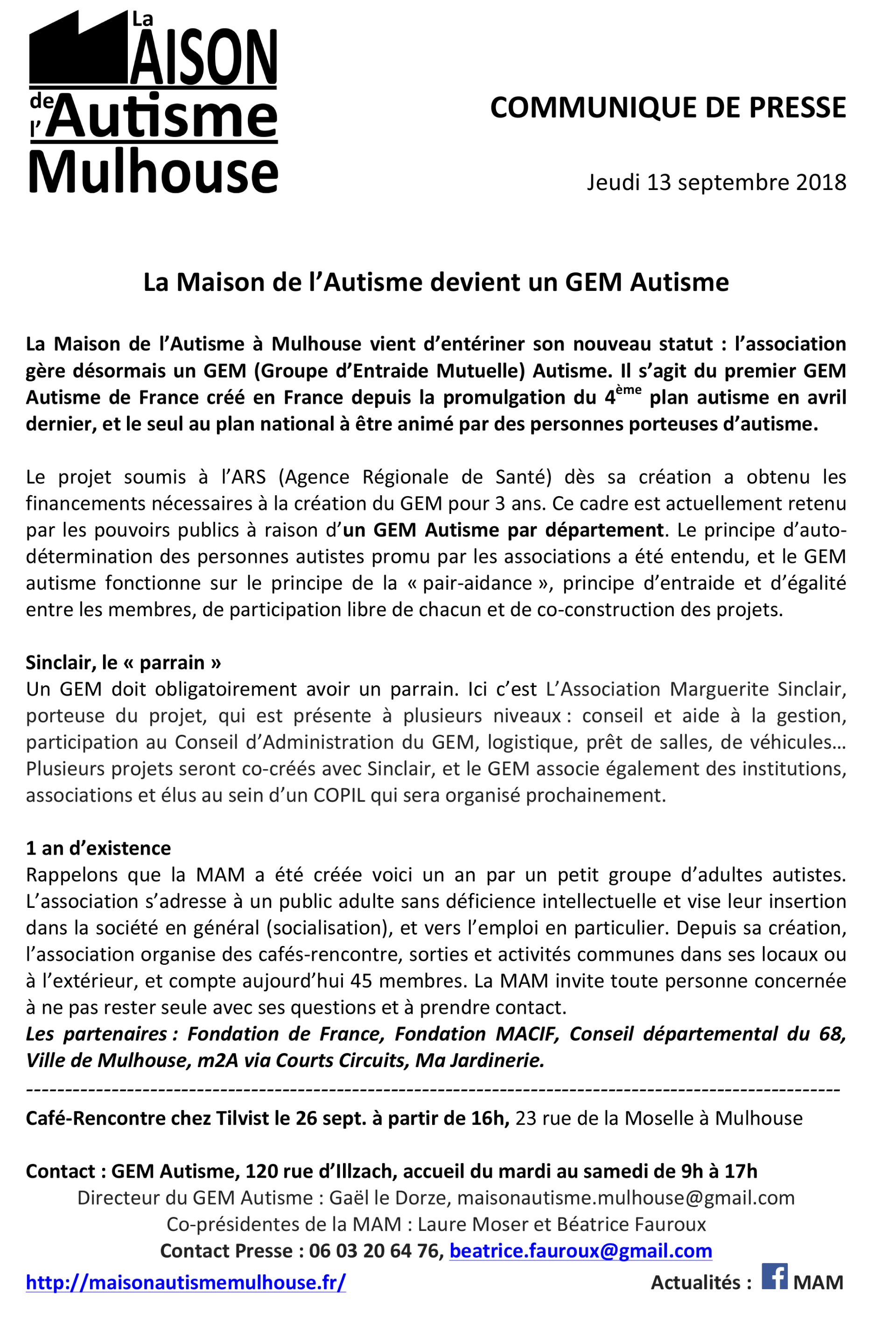 Communiqué de Presse du 13 septembre 2018