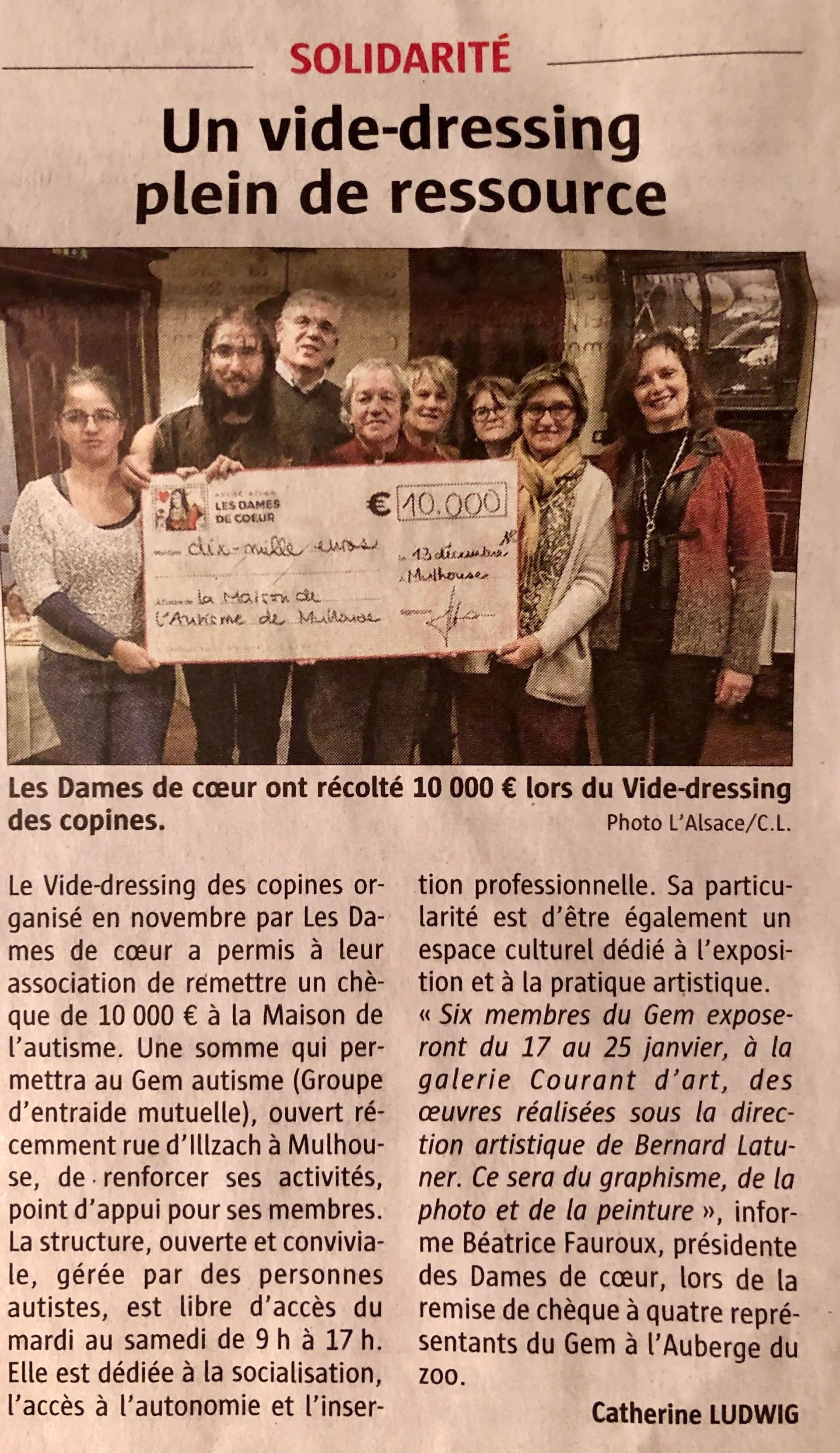 Nous avons reçu un chèque de 2000€, remis par la Maire de Mulhouse Michèle Lutz, en personne !
